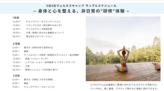企業向けウェルネスリトリート研修「Wellness Camp」を提供開始