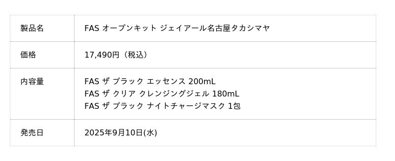 株式会社シロク(本社:東京都渋谷区、代表取締役社長:飯塚勇太)が展開する発酵エイジングケア*¹ブランド「FAS(ファス)」は、東海エリア初となる常設カウンター「FAS ジェイアール名古屋タカシマヤ」を2025年9月10日(水)にオープンいたします。