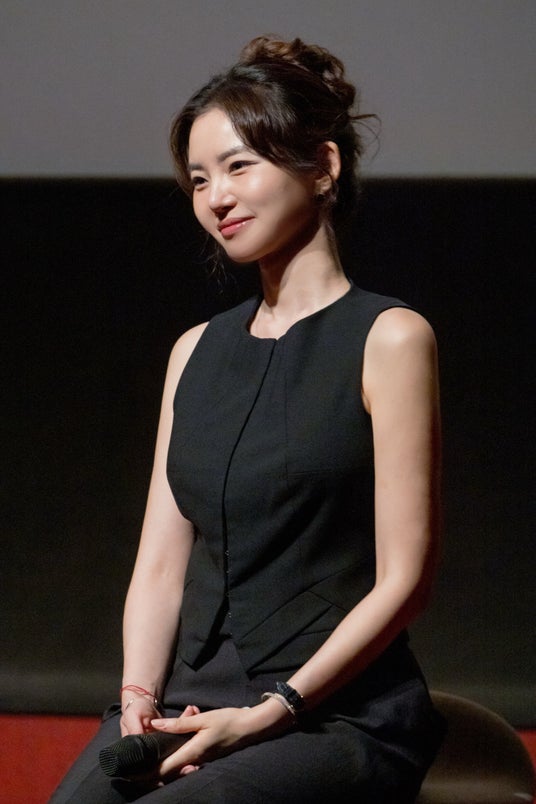 舞台挨拶は、「私は沖縄ブルーノートの監督、チョ・ソンギュです。」というチョ・ソンギュ監督の日本語でのあいさつに始まり、「皆さんこんにちは、お久しぶりです。キム・ドンワンです。お会いでき、また馴染みのあるお顔にも再会できて嬉しいです。」(キム・ドンワン)、そして女優のファン・スンオンも「初めまして、私はスンオンです。よろしくお願いします。」と日本語で自己紹介をするところからスタート。