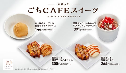【かっぱ寿司】秋の「ごちCAFE」シリーズに、『蜜おさつと醤油キャラメルアイス』、『濃厚チョコレートムース~ストロベリーソース~』など新作3品を含む贅沢スイーツ全4種が登場