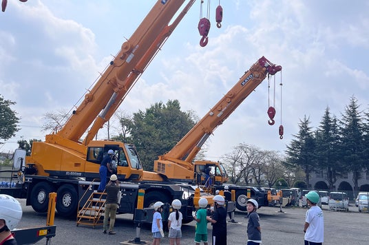 クレーン車の操作を体験する様子