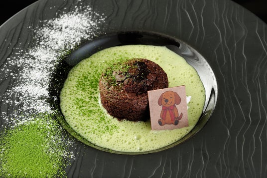 温かいガトーショコラ 抹茶と柑橘の香りを添えて