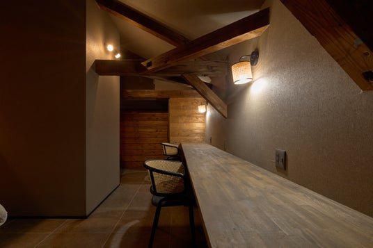 宿の2階は、伝統的な小屋組を活かした開放感あふれる空間。