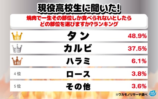全国の現役高校生に「好きな焼肉の部位」について調査を実施しました