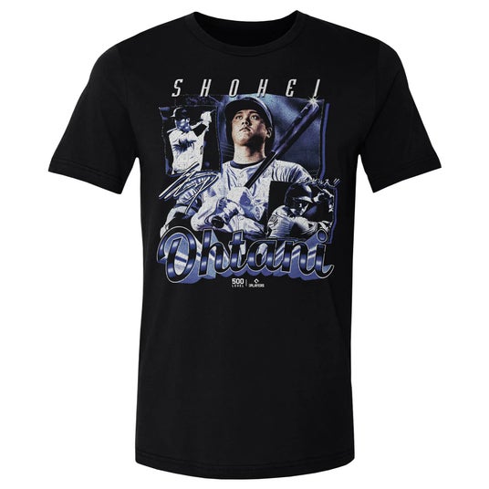【500LEVEL】 Shohei Ohtani 「Los Angeles D Grunge WHT」 Tシャツ:迫力あるフォトデザインを大胆にあしらい、大谷選手の力強さを表現した一枚。ブラックベースにブルートーンのグラフィックが映えるファン必携のアイテム。