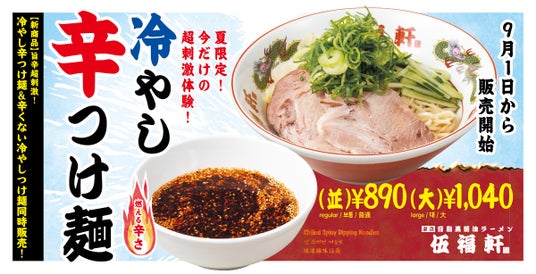 三田製麺所を運営する株式会社エムピーキッチンホールディングス傘下のエムピーキッチンの新ブランド「東京背脂黒醤油ラーメン伍福軒」では、「東京背脂黒醤油ラーメン 伍福軒」では、2025年9月1日(月)より、『冷やし辛つけ麺』と『辛くない冷やしつけ麺』を販売いたします。