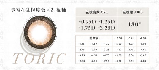乱視度数(CYL):-0.75 D/-1.25 D/-1.75 D/-2.25 D