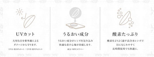 3. UVカット機能、うるおい成分など瞳に優しいレンズスペック