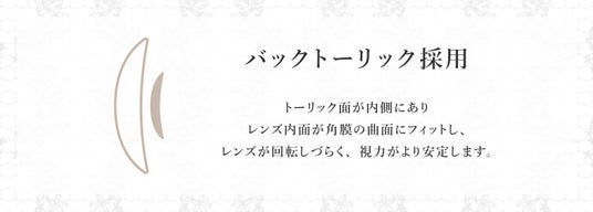 バックトーリックデザインは、トーリック面が内側にありレンズ内面が角膜の曲面にフィットし、レンズが回転しづらく視力がより安定します。