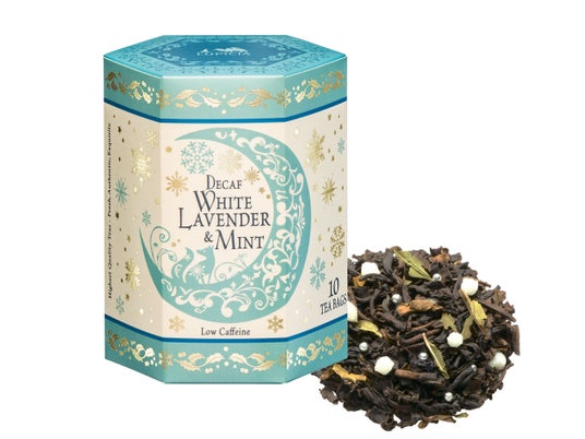 デカフェ・ホワイトラベンダー&ミント【紅茶】カフェインを抜いたデカフェ紅茶に、ホワイトラベンダーの可憐な香りとミントをブレンド。優しく澄んだ味わい。