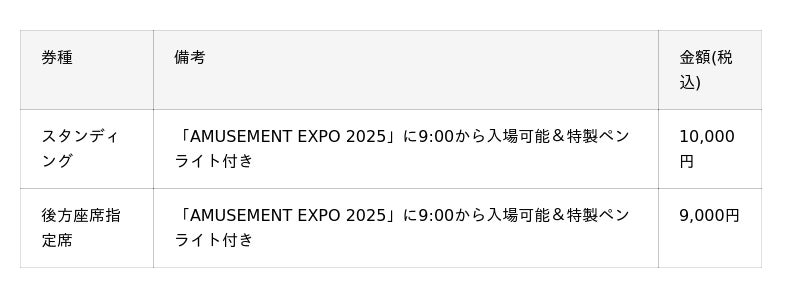 ※「AMUSEMENT MUSIC FES 2025」を観覧される場合は、小学生以下も含め、スタンディングか後方座席指定席のチケットが必要です。