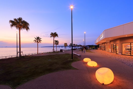 関西空港を対岸に、風に揺れるヤシの木と広い海を見渡しながら、国内外の著名ブランドが約250店舗でショッピングが楽しめるシーサイドアウトレット。りんくうプレミアム・アウトレットは今年11月で開業25周年を迎えます。シーサイドエリアには海に沈む夕日を堪能できる広場や、グランピング施設があり、多様なニーズに対応。「りんくうタウン駅」から徒歩6分、空港からも車でおよそ15分と、アクセスのよい「りんくうタウン内」に立地しています。