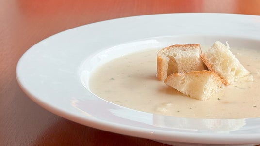 - 北海道産きのこのクラムチャウダー バゲット添え(800円)