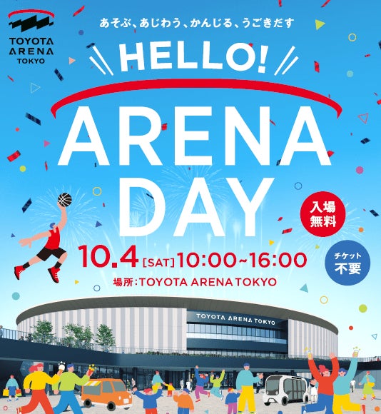 トヨタアルバルク東京株式会社(本社:東京都江東区、代表取締役社長:林 邦彦)は、2025年10月3日(金)開業の新アリーナ「TOYOTA ARENA TOKYO」の開業を記念して、10月3日(金)から26日(日)の期間を「OPENING 4WEEKS」と称し、期間中に実施するイベントとのコラボレーション企画や近隣施設との連携企画を実施します。さらに、OPENING 4WEEKS期間中の10月4日(土)には、アリーナを無料で楽しむことのできる体感イベント「HELLO! ARENA DAY」を実施いたします。