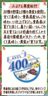 本品のパッケージには、りんご畑越しに望む紅葉の岩木山やねぶた祭、また今年開港400周年を迎える青森港に係留され、昔のリンゴ市場を再現したジオラマなどが楽しめる「八甲田丸」をデザイン。視覚的にも青森県の魅力を存分に感じていただけます。