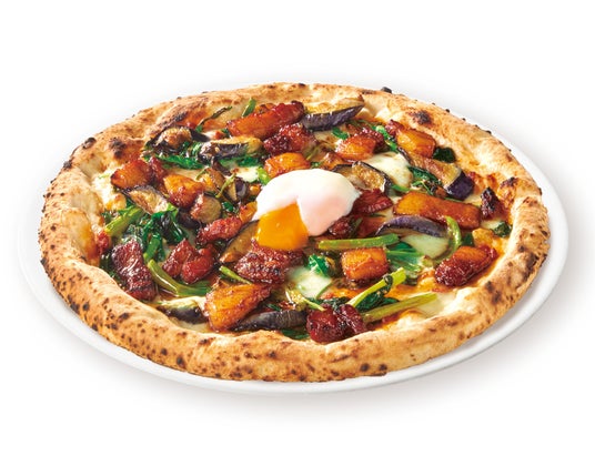 【商品名】豚肉の台湾風ビスマルク【商品説明】台湾の定番料理ルーロー飯をモチーフにしたビスマルク。豚肉の旨味に空心菜の食感が楽しめるスペシャルピッツァ。