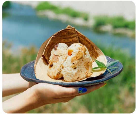 季節の海鮮料理を味わえる「有田川温泉 鮎茶屋」から、地元で水揚げされた太刀魚をはじめ、紀州うめぶたや名産の鮎などこだわりの具材をじっくり炊き上げ、おにぎりに!
