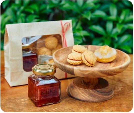 "こだわりを持って育てられた果物をお菓子に変えて発信する"をコンセプトに、和歌山県産ブランドいちご「まりひめ」を使用したジャムや、そのジャムをサンドしたクッキー、レモン果汁と果皮をたっぷり使用したレモンケーキをセットにしてお届けします。