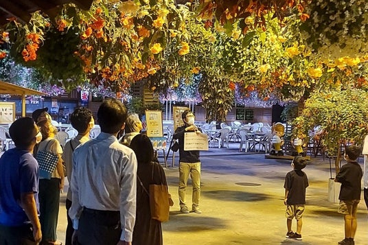夜の幻想的な園内でクイズに挑戦