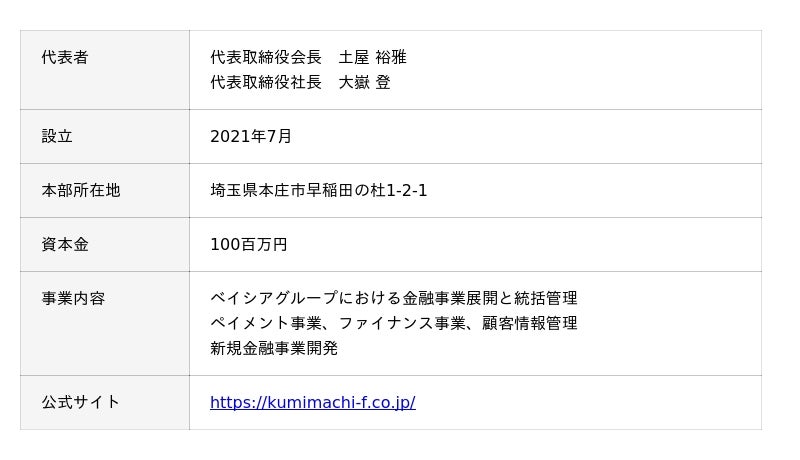 くみまちフィンテックは、ベイシアグループの小売事業と金融サービスのシームレスな連携を実現することを目的として2021年7月に設立されました。