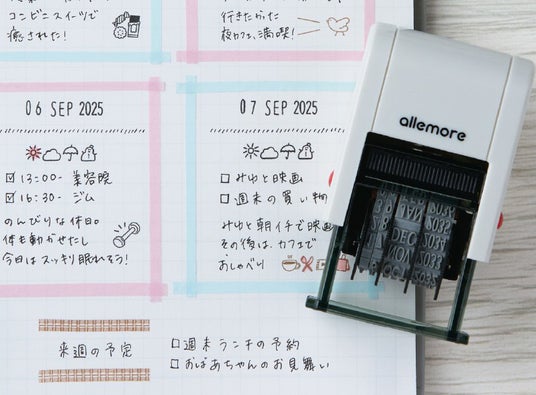 ・nototo dater 文具女子博 初登場記録をきれいに残せる回転日付スタンプ「nototo dater(ノトト データー)」が文具女子博に初登場します。印面サイズは18×3.6mmと手帳に収まりやすい設計で、裏抜けしにくい油性顔料インキの採用により、スタンプした上から水性ペンで色を塗ってもにじみにくく、日々のあらゆる記録シーンで活躍します。