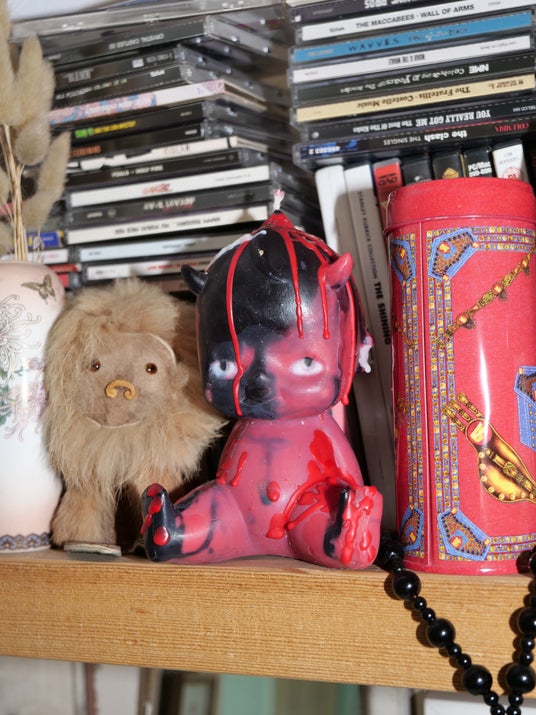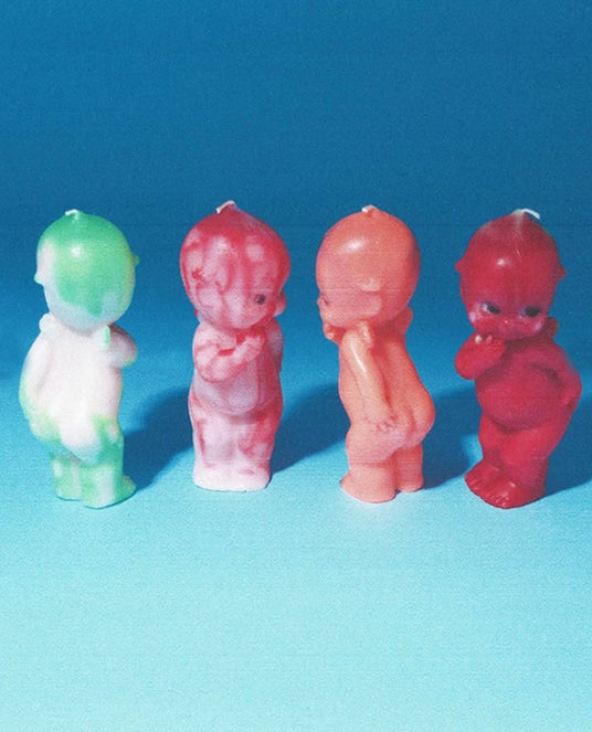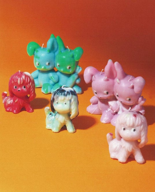 HOPEWORLDのキャンドルは、火を灯すと香りと光でリラックスを演出するだけでなく、アートピースとして置くだけでも空間に魔法をもたらします。棚の上に「友達」として、あるいは「供物」として並べるような、不思議でユーモラスな魅力が特徴です。