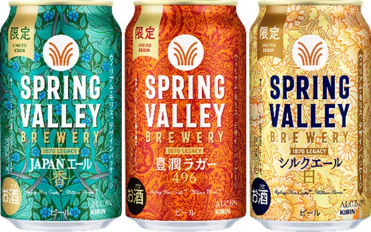キリンビール株式会社(社長 堀口英樹)は、クラフトビールブランド「SPRING VALLEY BREWERY」から、定番3品「SPRING VALLEY BREWERY 豊潤ラガー 496」、「SPRING VALLEY BREWERY シルクエール 白」、「SPRING VALLEY BREWERY JAPANエール 香」(各350ml缶)のウィリアム・モリスのデザインパッケージ缶を9月24日(水)より数量限定で発売します。