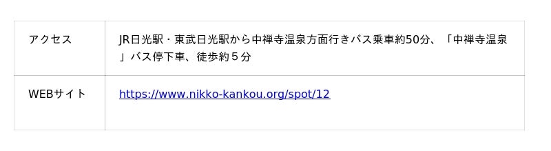 おすすめの見どころ【白滝(しらたき)】白滝は、名前の通り真っ白な水の帯が岩肌を滑るように落ちる姿が美しく、非日常を感じさせてくれます。周囲の紅葉に映えて、静けさの中に凛とした存在感を放ちます。日光市側から塩原温泉へ向かって約10分とアクセスしやすく、散策気分で立ち寄れるのも嬉しいポイントです。