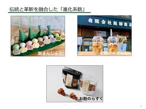 今回「伝統と革新」をテーマに掲げ、持続可能な食材である生麩の可能性を広げるため、麩まんじゅうや生麩田楽などBtoC向け商品のラベル・パッケージを刷新。