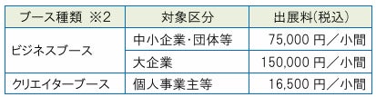 ※2:ブースの種類により小間サイズが異なります。上記募集要項をご確認ください。