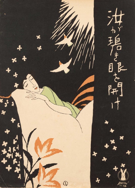 少年山荘では人生・デザイン・音楽をテーマに作品を展示し、写真や遺品を通して夢二の人となりをご紹介。「婦人グラフ」や秋のお月見をイメージしたうさぎの描かれた「セノオ楽譜<月光>」などデザイナーとしての夢二の作品をセノオ楽譜収録の音楽を聴きながらご覧いただけます。