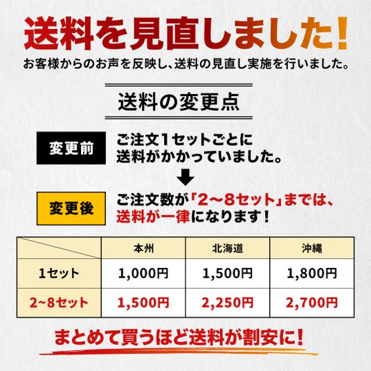 改定後:ご注文数が2~8セットまでは、送料が一律