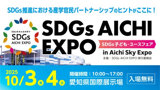 SDGs AICHI EXPO実行委員会(会長:大村愛知県知事)は、2025年10月3日(金)・10月4日(土)の2日間、愛知県国際展示場(Aichi Sky Expo・常滑市)にてSDGs AICHI EXPO ~SDGs子ども・ユースフェア~を開催します。