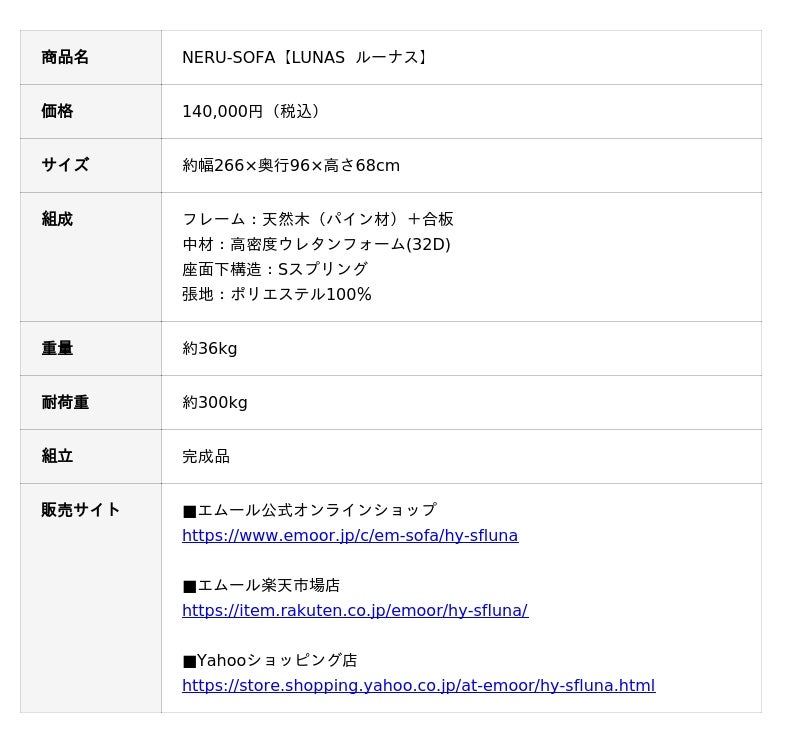 「身体に合った寝る・座る・たたむ」を提供する健康家具ブランドEMOORを展開する株式会社エムール(東京都立川市:代表取締役 高橋 幸司/以下エムール)は、2025年9月3日より、リラックス性能とデザイン性を兼ね備えたソファ『LUNAS ルーナス』(以下、『ルーナス』)の販売を開始しました。