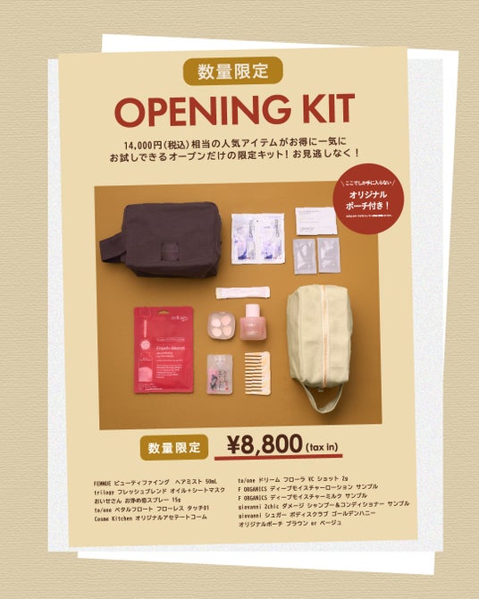オリジナルデザインポーチに入ったお得な限定オープニングキット