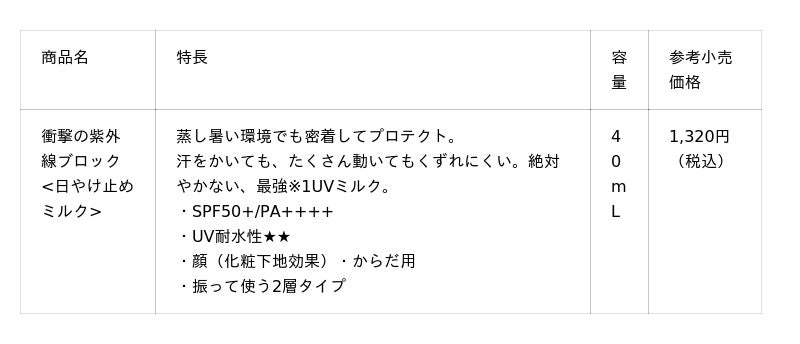 「衝撃の紫外線ブロック」 商品情報