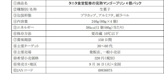 完熟マンゴーのおいしさと、とろっとしたプリンの食感が絶妙!「タニタ食堂監修の完熟マンゴープリン4個パック」9月16日(火)より全国にて新発売