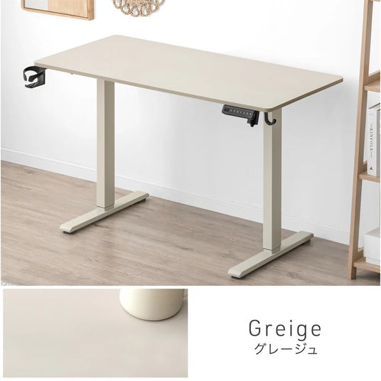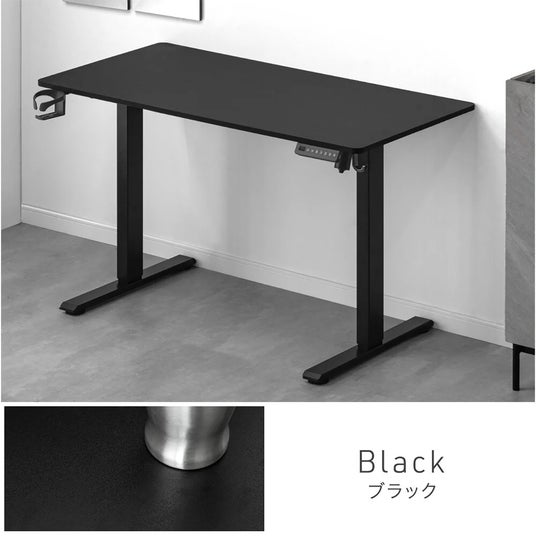 本製品は、お部屋や用途に合わせて最適なサイズをお選びいただけるよう、幅100cm/120cm/140cmのサイズ展開に加え、作業の幅が広がるL字タイプもご用意しています。高価なイメージのある電動昇降デスクを、より身近に感じていただける設計で、ボタン1つで作業中の立ち姿勢と座り姿勢を簡単に切り替えることが可能です。これにより、身体への負担を軽減しながら、効率的に作業を進めることができます。