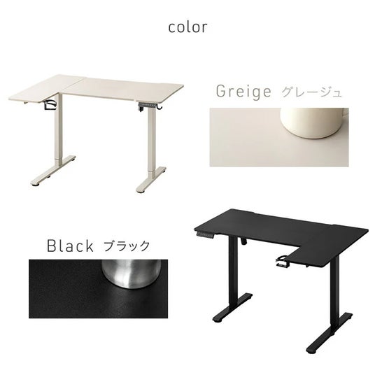 L字タイプはブラック、グレージュの2色から選択可能です。お部屋や作業スタイルに合わせて、最適なデスクをお選びいただけます。