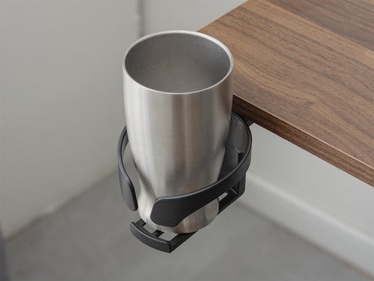 (画像:デスクの天板下に収納可能なドリンクホルダー)