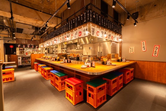一都三県に50店舗を展開する、九州博多の風物詩"中洲の屋台村"の雰囲気と名物料理が楽しめる大衆居酒屋です。店内は博多中洲の屋台村を完全再現。祭り囃子をBGMに、粋の良いスタッフが創る熱気の渦を体感できる"劇場型酒場"です。名物「鉄鍋餃子」をはじめ、もつ鍋やおでんなど、博多中洲の屋台をはしご酒するように、博多名物をお楽しみいただけます。元気、活気、笑顔溢れる空間をお楽しみください。