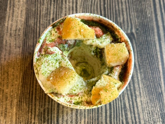 内容:くちどけがよく滑らかな舌触りのバニラフローズンカスタードをベースに、甘酸っぱいストロベリーピューレ、柔らかく甘いシュガードーナツ、 ほろ苦さがアクセントとなる抹茶パウダーを専用のマシーンで一気に混ぜ合わせたアイスデザートです。鮮やかな赤と緑のコントラストで、見た目にも楽しいデザートです。