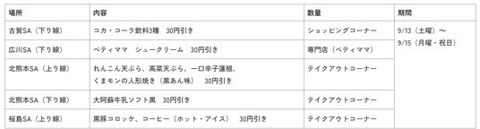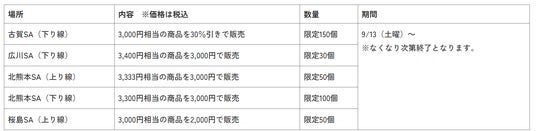 各SAの人気メニューを期間限定の割引価格で販売します!