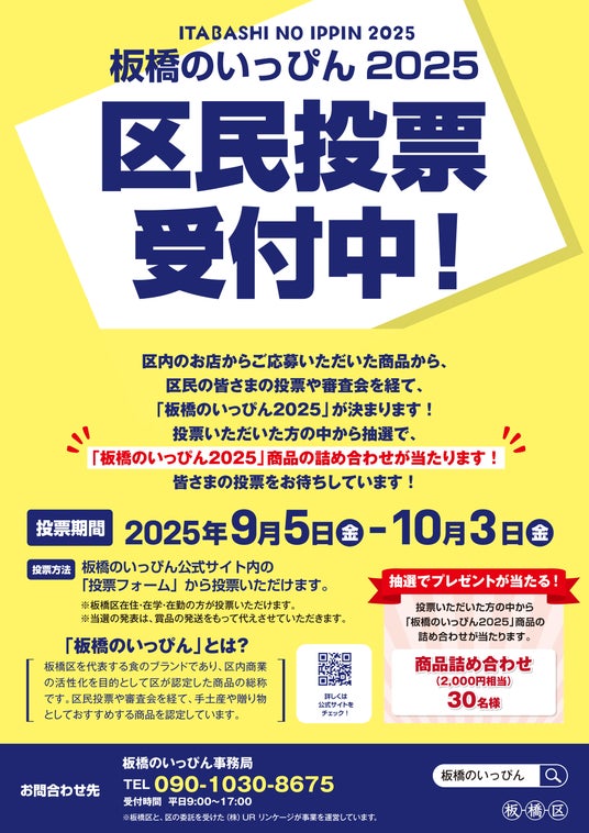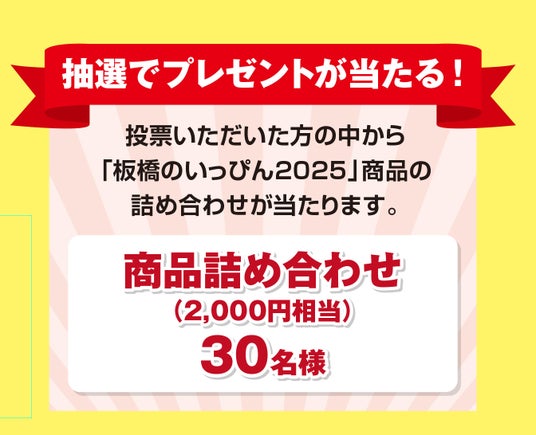 投票された方には、抽選で「板橋のいっぴん2025」詰め合わせをプレゼント♪
