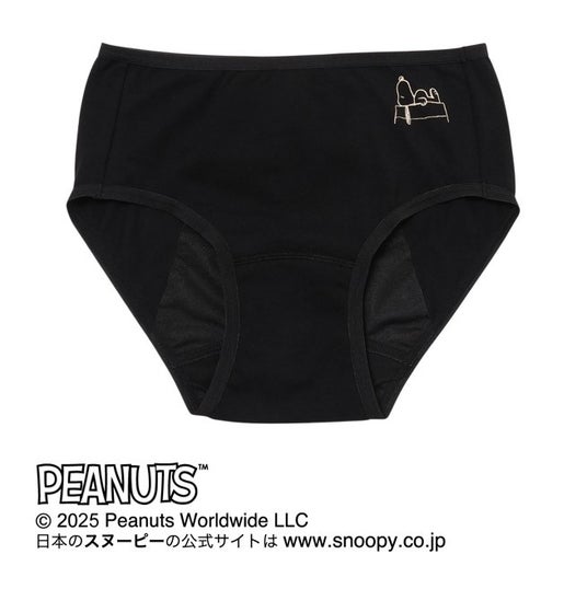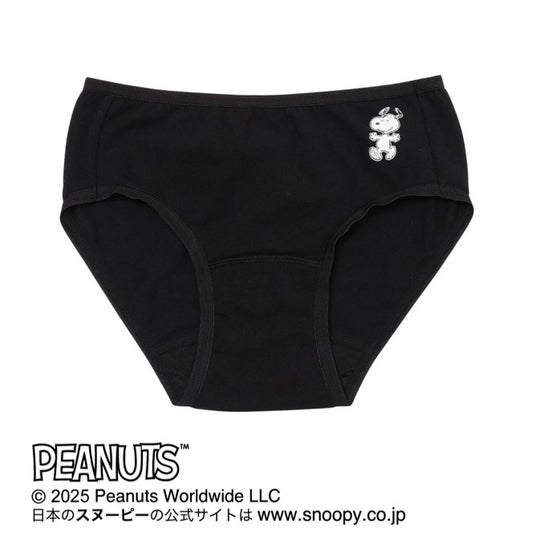 ■PEANUTS サニタリーショーツ柔らかな綿混素材の身生地を採用したサニタリーショーツ。羽根つきナプキン対応の浮きマチ仕様です。クロッチ部分は綿混素材のため、サニタリー期以外の普段ばきも可能です。