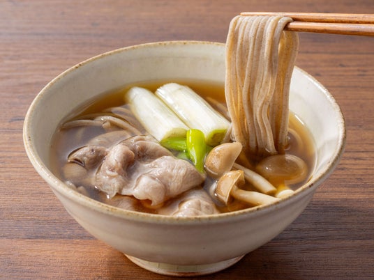 鴨南蛮そば鴨しゃぶコースご注文でそば食べ放題!軽く湯がいたそばを合わせ、鴨やねぎをのせてお召し上がりください。