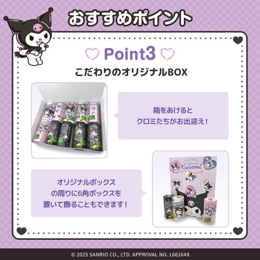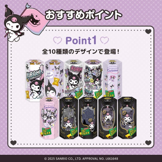 - クロミのアートが入った特別デザインのパッケージは全10種類(販売単位は10個1セット)