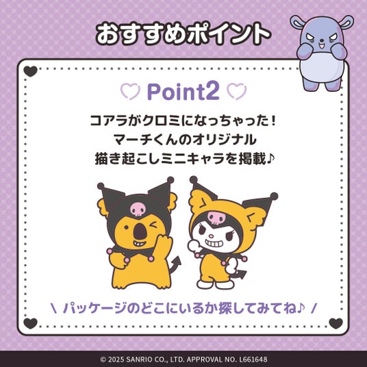 - マーチくんとクロミがそれぞれに扮したオリジナル描き起こしデザインもパッケージに掲載