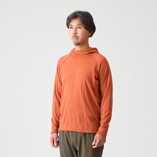 ふんわり優しい肌触りが特長の革新的なウール素材NUYARNを採用したロングスリーブティーシャツです。運動量の多いハイキングや雪山のラッセルにもオーバーヒートしないちょうどいい保温性と通気性、そして吸汗調湿性があります。