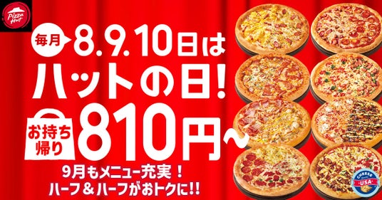 【毎月ピザハットの"ハットの日"は超おトク!】9月は人気ピザ6種が810円&対象サイドメニューが50%OFFになる大特価キャンペーン!